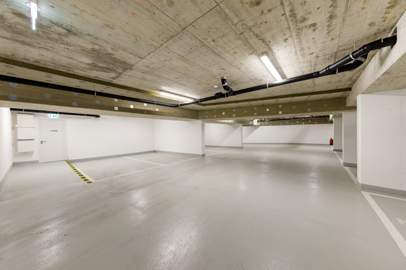 In der hauseigenen Tiefgarage können großzügige Stellplätze für EUR 30.000.-erworben werden.