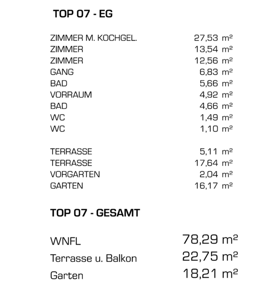 Die Wohnungen werden schlüsselfertig im Erstbezug verkauft. Es handelt sich um einen ökologisch und qualitativ hochwertigen Neubau. Die Wohnungen werden ohne Küche verkauft. Sonstige Angaben Dieses Angebot ist unverbindlich und freibleibend! Sämtliche Angaben basieren auf den uns vorgelegten Informationen und sind ohne Gewähr!
