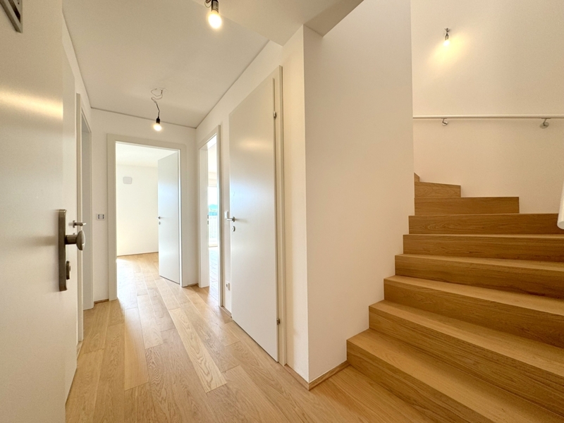 In allen Zimmern ist ein wunderschöner Parkettboden verlegt und die Nassräume sind hochwertig verfließt. Auch die offene Wohnküche besticht durch ihr modernes Design und Sie können bei einem Abendessen mit ihren Gästen interagieren, während das Essen zubereitet wird.