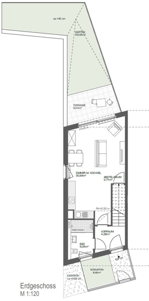 Diese Wohnung verfügt über eine schöne Gartenfläche im Erdgeschoss und einen tollen Balkon im 1. Obergeschoss. Bei diesem Projekt hat Jede Wohnung ein eigenes Kellerabteil und Parkmöglichkeiten befinden sich gegen Aufpreis in der hauseigenen Tiefgarage.