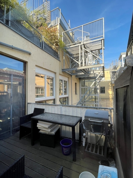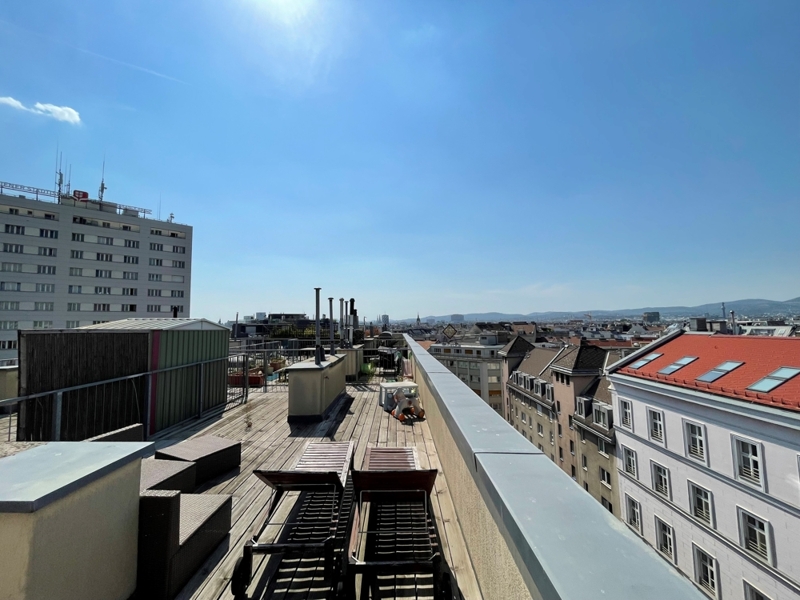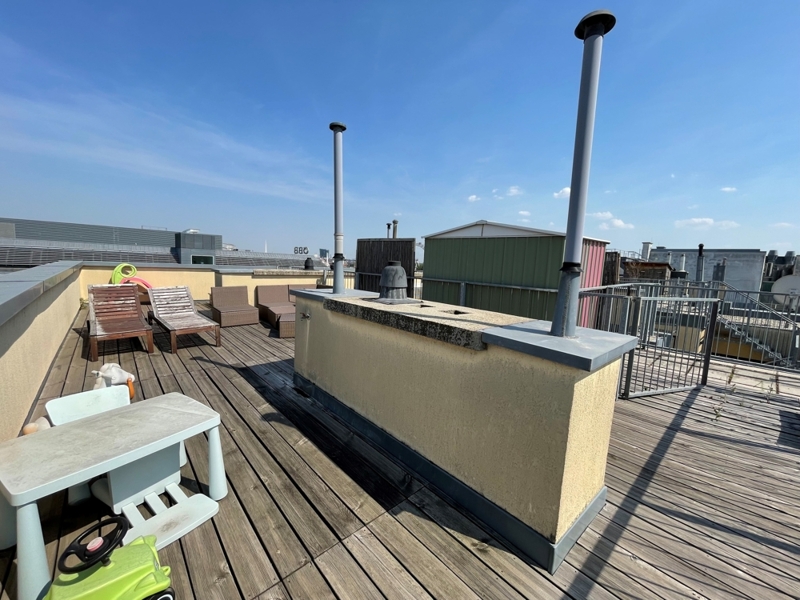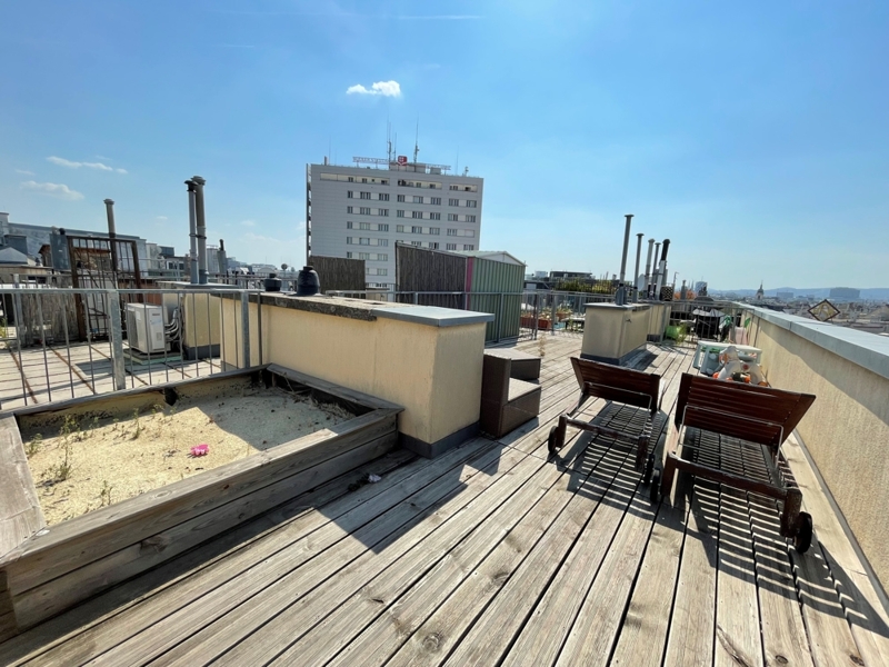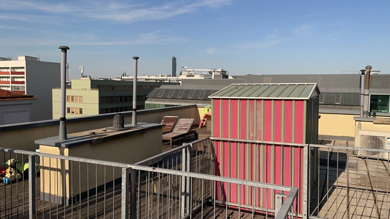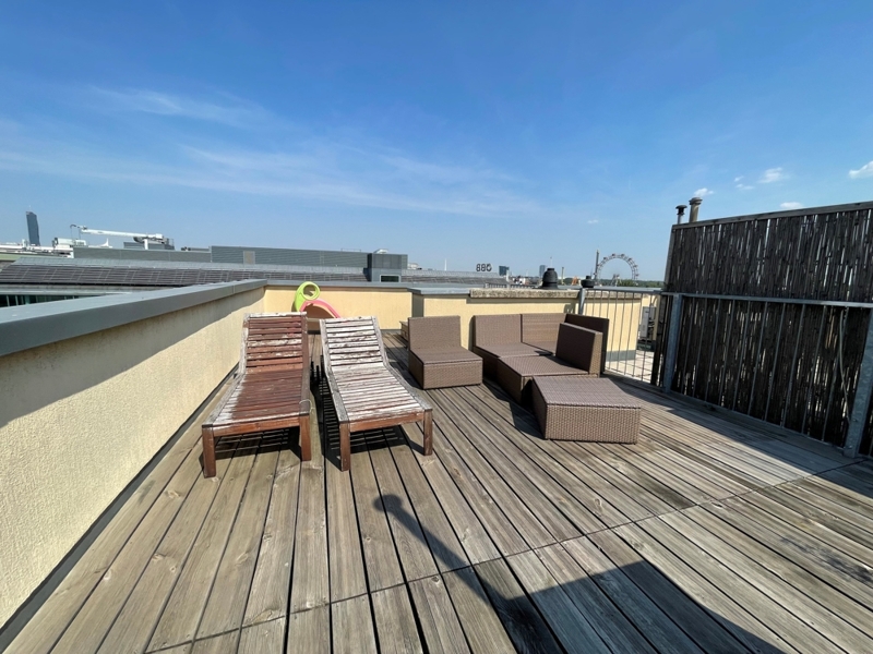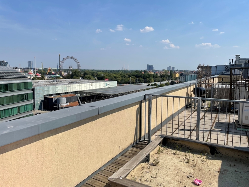 Eine zusätzliche Besonderheit sind die zwei Terrassen, insbesondere die Dachterrasse mit Ausblick auf dem Wiener Prater und Zentrum Wiens.