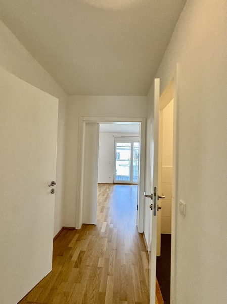 Vorzimmer, große Wohnküche, 2 Schlafzimmer, Bad, WC, Abstellraum, sowie ein Balkon.