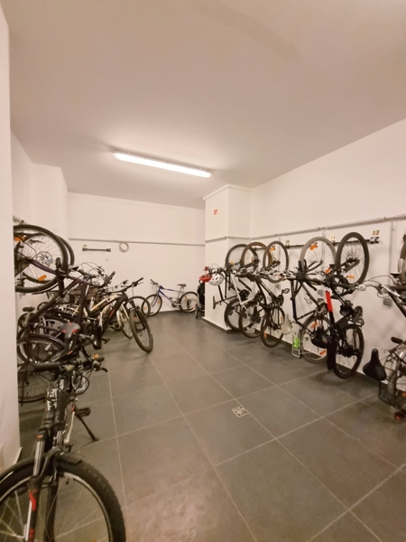 Ein Personenaufzug, Fahrradraum und Kellerabteil sind vorhanden.